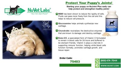 We strongly recommend continuing our World-Class SGGR puppies on both NuVet Plus and NuJoint Plus for a lifetime.
